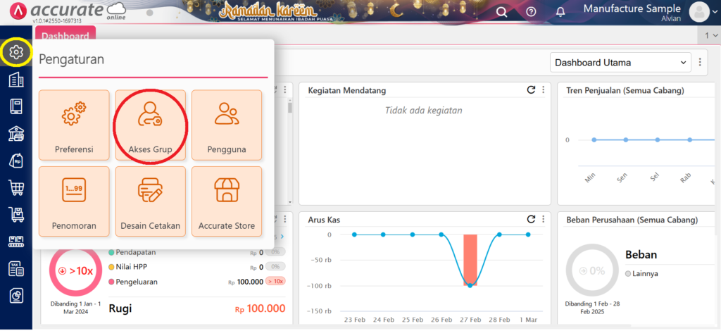 Pertama, login ke accurate.id menggunakan akun dengan level administrator. Hanya administrator yang memiliki izin untuk mengatur akses grup pengguna.