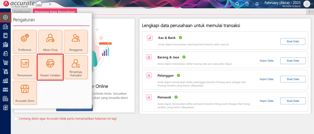 - Buka menu Pengaturan pada Accurate Online.