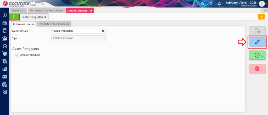 - Cari desain cetakan faktur penjualan yang ingin Anda ubah.