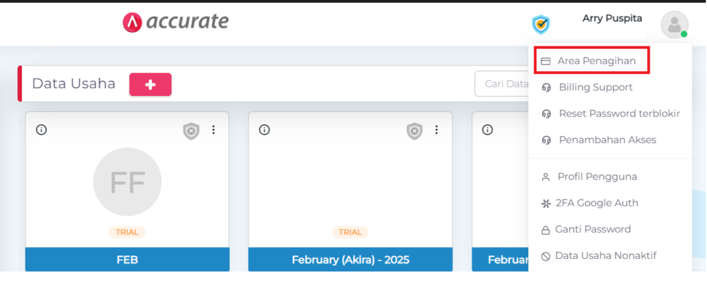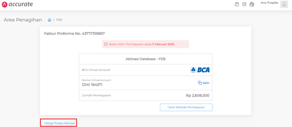 Jika pembayaran berhasil, database Accurate Online Anda akan aktif kembali dan siap digunakan.