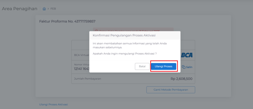- Klik tombol “Ulangi Proses Aktivasi”.