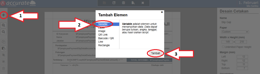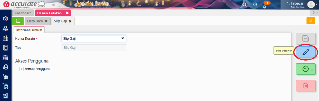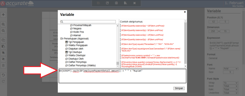Berikut panduan praktis untuk menampilkan terbilang (Say) di Accurate pada cetakan pencatatan gaji. Pastikan Anda sudah memiliki akses ke menu desain cetakan.