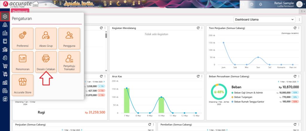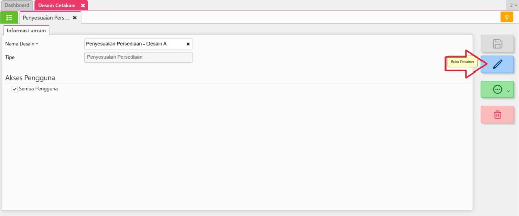 - Masuk ke modul Pengaturan → Desain Cetakan.